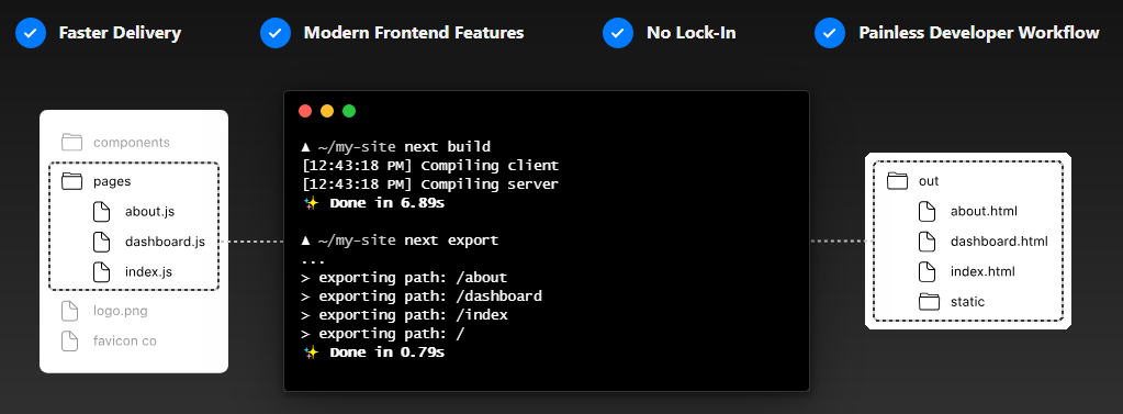 That means less JavaScript to download, parse and execute - leaving more time for your code, so you can build an experience you define without fighting to keep a framework under control.